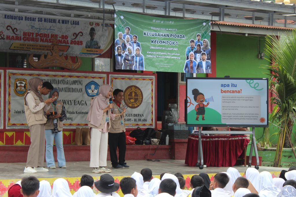 Kelompok mahasiswa Kuliah Kerja Nyata (KKN) Universitas Lampung yang bertugas di Kelurahan Pidada, Kecamatan Panjang, melaksanakan kegiatan sosialisasi bertajuk “Cerdas Bencana: Penguatan Kapasitas dan Kesadaran Siswa dalam Menghadapi Bencana”. Kegiatan ini dilaksanakan sebagai salah satu program kerja di bidang edukasi kebencanaan dengan sasaran utama siswa sekolah dasar.