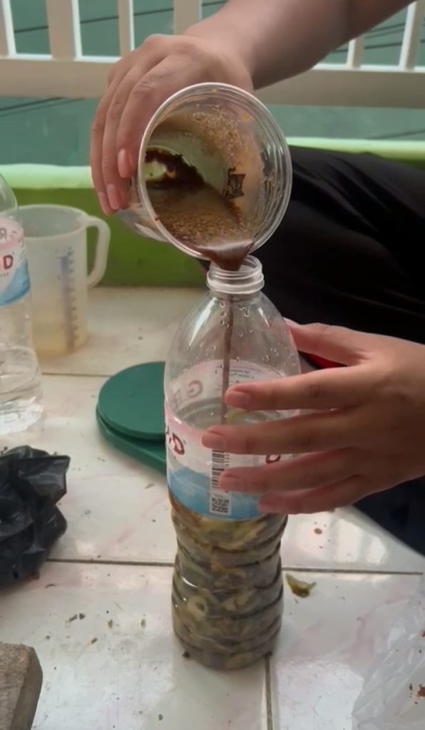Eksperimen eco-enzyme di posko menjadi salah satu kontribusi nyata mahasiswa KKN Unila dalam mempromosikan gaya hidup berkelanjutan di lingkungan pedesaa