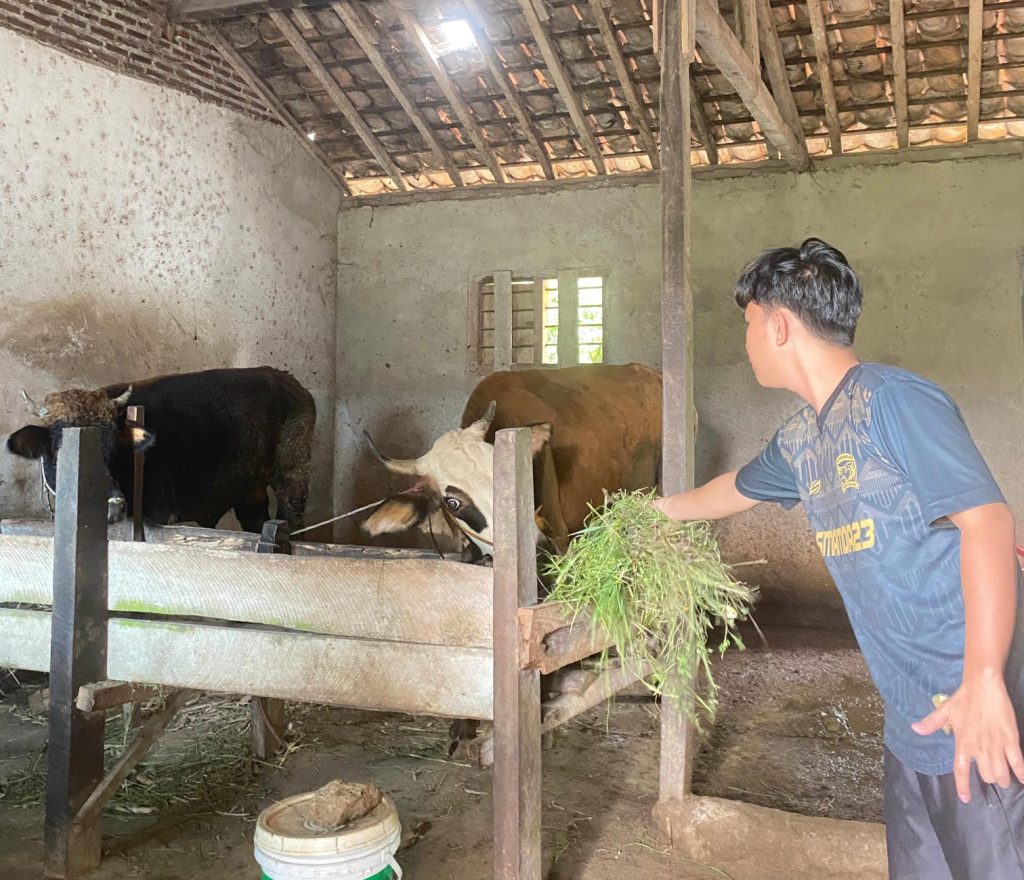 Pada pagi hari, mahasiswa KKN mengumpulkan kotoran hewan ternak milik warga yang akan digunakan sebagai pupuk organik. Pemanfaatan kotoran hewan ini dilakukan sebagai upaya mengurangi limbah ternak sekaligus meningkatkan kesuburan tanah dengan bahan alami yang ramah lingkungan. Kotoran hewan tersebut kemudian dipersiapkan untuk diolah dan digunakan pada lahan yang telah direncanakan dalam program kerja pertanian mahasiswa KKN.
