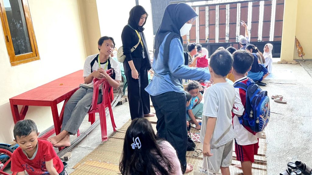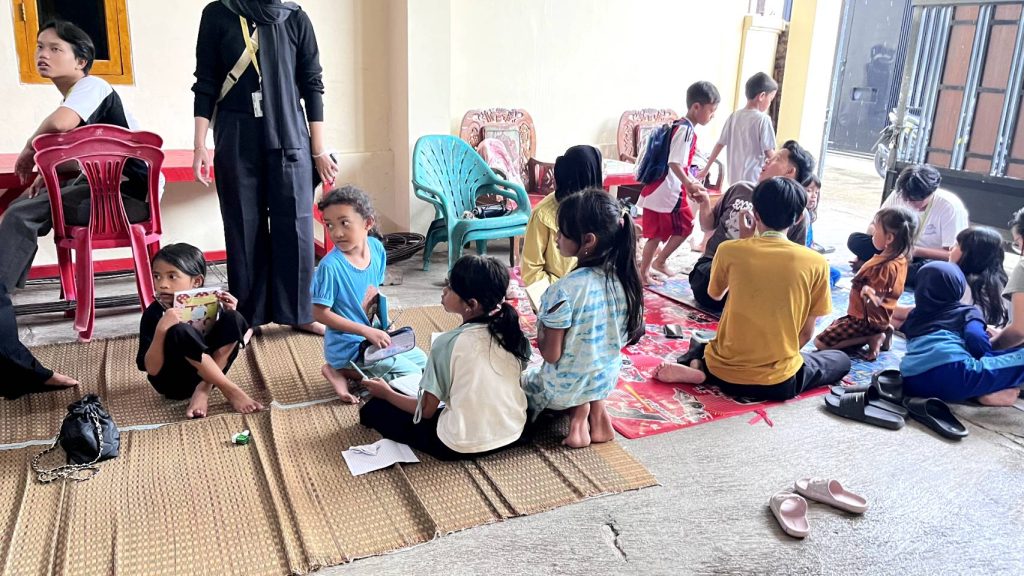 Raut wajah ceria dan tanpa beban tampak jelas saat satu per satu anak mulai berkumpul membawa buku dan alat tulis. Hubungan yang awalnya kaku antara mahasiswa dan warga cilik ini, kini telah mencair menjadi ikatan kakak-adik yang penuh keakraban.