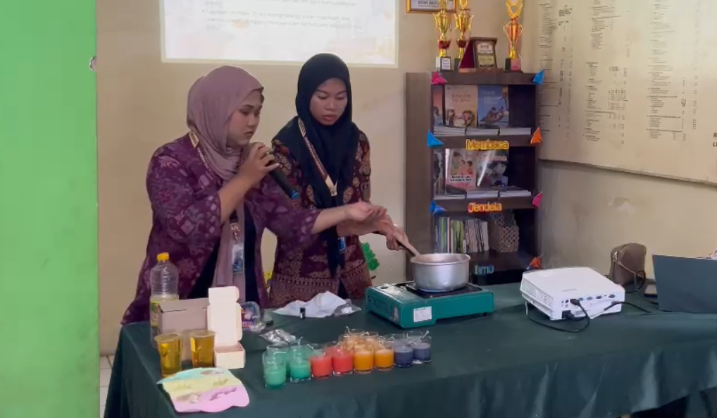 Dalam workshop tersebut, mahasiswa KKN menjelaskan terlebih dahulu dampak buruk pembuangan minyak jelantah sembarangan terhadap lingkungan. Selanjutnya, mereka mempraktikkan cara mengolah minyak bekas pakai menjadi lilin aromaterapi dengan tambahan aroma yang menenangkan, serta sabun batang alami yang aman digunakan sehari-hari.