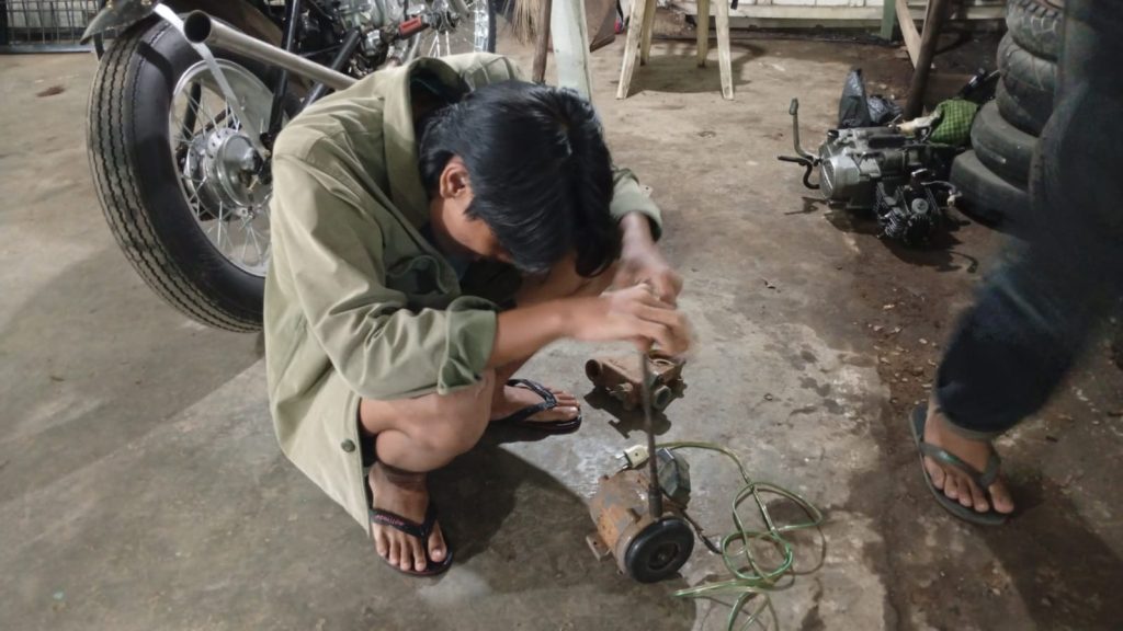 Proses pembuatan mesin dilakukan secara bertahap, dimulai dari perakitan rangka, pemasangan komponen utama, hingga penyesuaian sistem kerja mesin agar dapat berfungsi secara optimal. Dalam pelaksanaannya, mahasiswa KKN turut berkoordinasi dengan warga dan pemuda setempat untuk memastikan proses pembuatan berjalan aman serta sesuai dengan kondisi lingkungan desa.