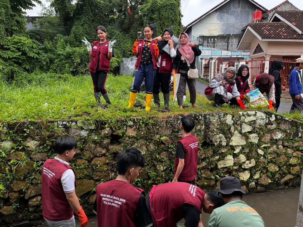 Kegiatan ini tidak hanya menyasar pada kebersihan fisik, tetapi juga menjadi sarana edukasi lapangan mengenai pentingnya sanitasi lingkungan bagi warga sekitar. Terlihat para mahasiswa bekerja sama secara terorganisir; sebagian bertugas menggali lumpur, sementara yang lainnya memegang karung untuk menampung limbah sebelum dibuang ke tempat pemrosesan akhir. Partisipasi aktif dari masyarakat, mulai dari bapak-bapak yang membawa peralatan hingga ibu-ibu yang memberikan dukungan moral, semakin mempererat tali silaturahmi yang telah terbangun selama dua minggu terakhir. Aksi gotong royong di parit ini menjadi salah satu tonggak keberhasilan program kerja fisik kelompok, sekaligus meninggalkan kesan positif tentang kepedulian generasi muda terhadap kualitas hidup masyarakat di Kelurahan Rajabasa.