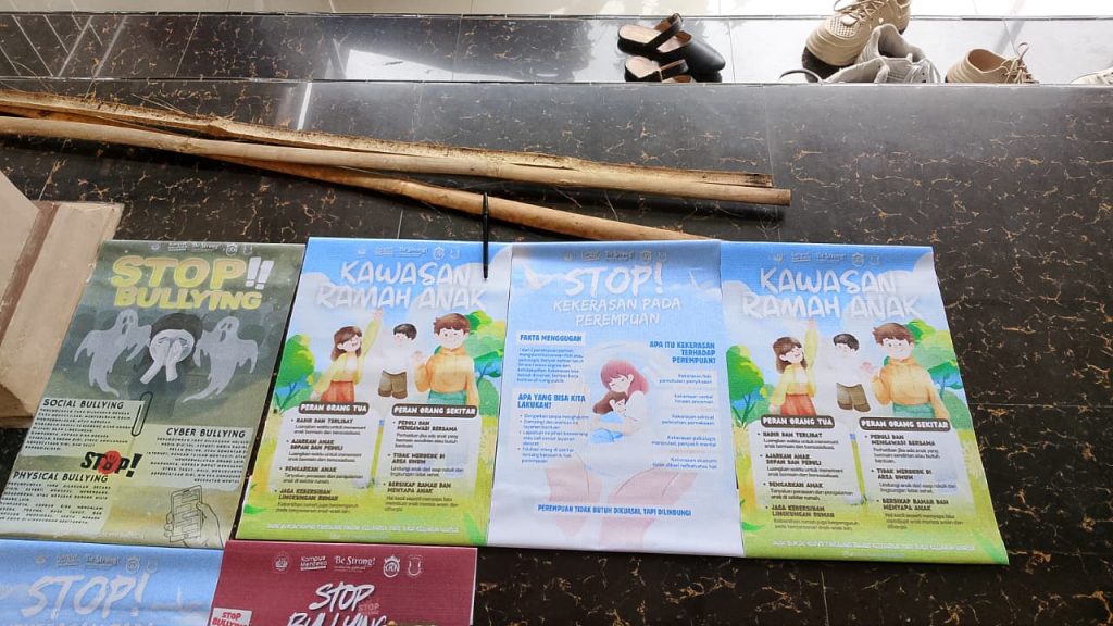 Pada sore hari, kegiatan dilanjutkan dengan pemasangan poster edukasi yang berisi pesan-pesan sosial penting, seperti Stop Bullying, Kawasan Ramah Anak, dan Stop Kekerasan pada perempuan. Poster-poster tersebut dipasang sebagai bentuk upaya peningkatan kesadaran masyarakat terhadap pentingnya perlindungan dan pemenuhan hak anak di lingkungan sekitar.