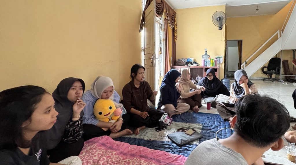 Diskusi berlangsung secara partisipatif; setiap anggota tim memberikan masukan, mulai dari urusan teknis lapangan, pembagian tanggung jawab, hingga penentuan skala prioritas kegiatan. Meskipun dikelilingi oleh tumpukan kabel pengisi daya dan perlengkapan seadanya, suasana tetap terasa hangat dan penuh kebersamaan. Terlihat raut wajah yang serius namun santai, sesekali diselingi obrolan ringan yang mempererat ikatan tim. Pertemuan hari ini menjadi fondasi penting bagi kami, karena melalui komunikasi yang intens inilah komitmen untuk mengabdi secara totalitas mulai terbentuk. Kami mengakhiri hari kedua ini dengan satu visi yang kuat, siap untuk melangkah ke tahap eksekusi program demi kemajuan Kelurahan Rajabasa 2.