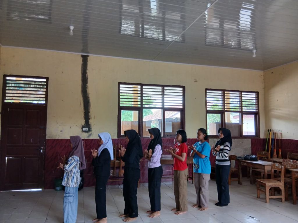 Selain pendampingan teknis, mahasiswa KKN juga memberikan motivasi kepada peserta agar lebih percaya diri dan berani menampilkan kemampuan mereka di hadapan umum. Suasana latihan berlangsung dengan tertib, kondusif, dan penuh semangat kebersamaan antara mahasiswa dan peserta latihan.