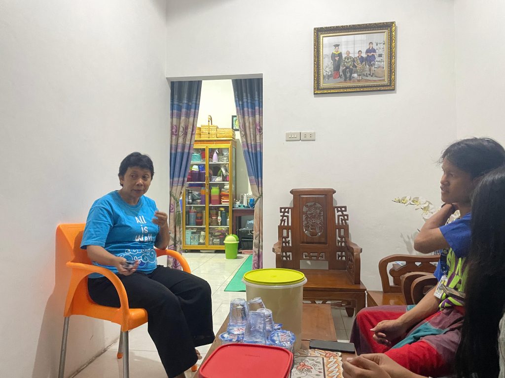 Dari hasil perbincangan tersebut, diketahui bahwa proses produksi peyek dan keripik singkong dilakukan berdasarkan pesanan yang masuk, sehingga jumlah produksi disesuaikan dengan permintaan konsumen. Ibu Jumi Ayu juga menjelaskan bahwa usaha ini telah dijalankan secara mandiri. Selama sesi wawancara, beliau terlihat sangat terbuka dan antusias dalam memberikan informasi, sehingga kegiatan survei dapat berjalan dengan lancar.