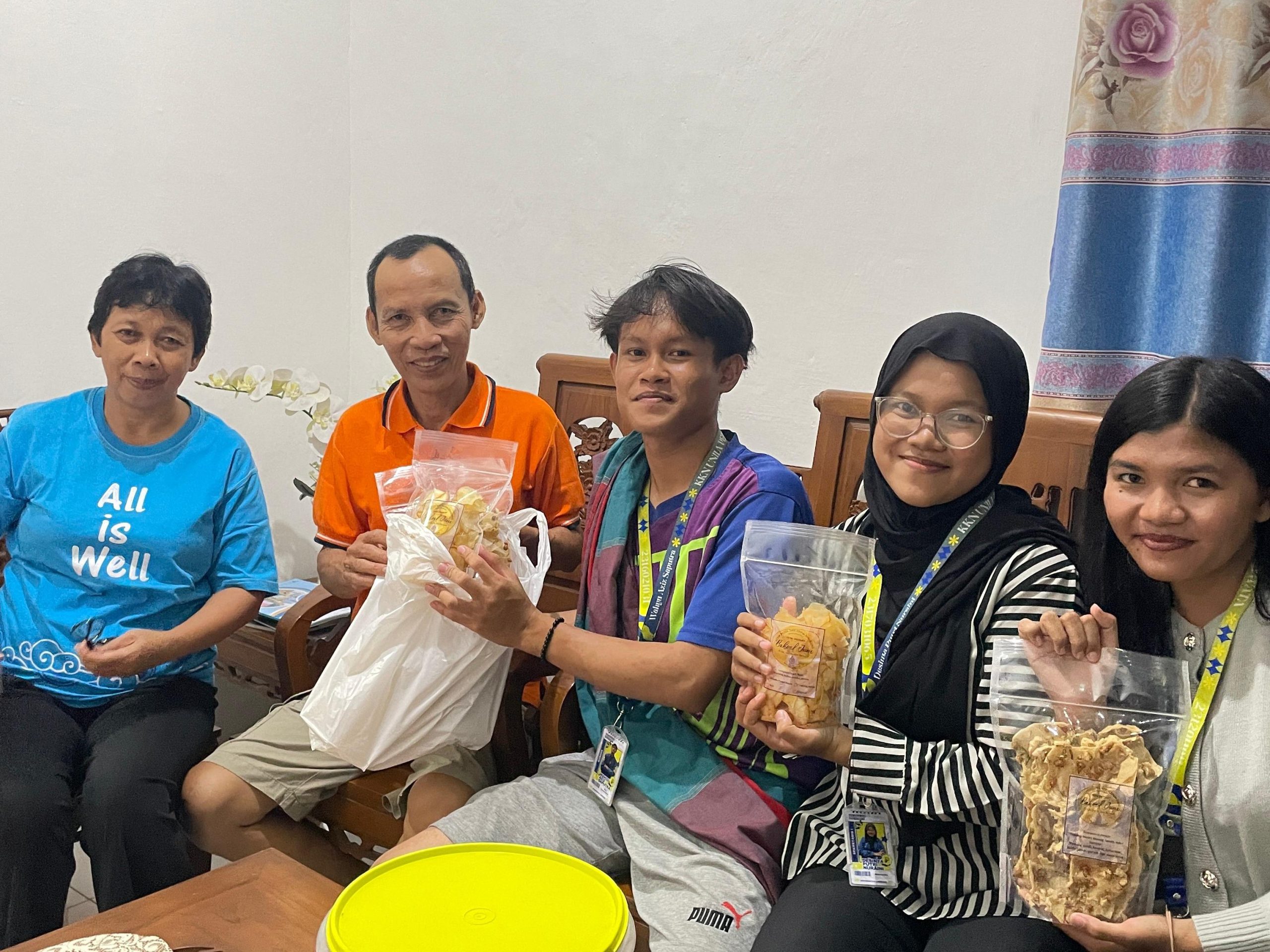 Salah satu UMKM yang dikunjungi adalah usaha milik Ibu Jumi Ayu yang bergerak di bidang produksi makanan ringan berupa peyek dan keripik singkong. Kunjungan ini disambut dengan sangat baik oleh pemilik usaha. Selama kegiatan berlangsung, mahasiswa KKN melakukan wawancara dan diskusi ringan bersama Ibu Jumi Ayu mengenai proses produksi, sistem pemesanan, serta kendala yang dihadapi dalam menjalankan usaha.