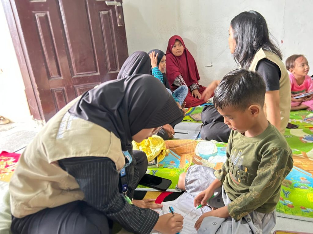 Seiring berjalannya waktu, jumlah anak-anak yang hadir dalam kegiatan Rumah Belajar semakin bertambah sehingga suasana posko KKN terlihat ramai namun tetap tertib. Mahasiswa KKN membagi peran dan tugas agar setiap anak mendapatkan pendampingan yang optimal. Anak-anak yang memiliki kesulitan serupa dikelompokkan agar proses belajar dapat berjalan lebih efektif, sementara anak-anak dengan kebutuhan khusus tetap mendapatkan perhatian secara individual. Hal ini dilakukan untuk memastikan seluruh peserta kegiatan merasa terbantu dan tidak tertinggal dalam proses belajar.