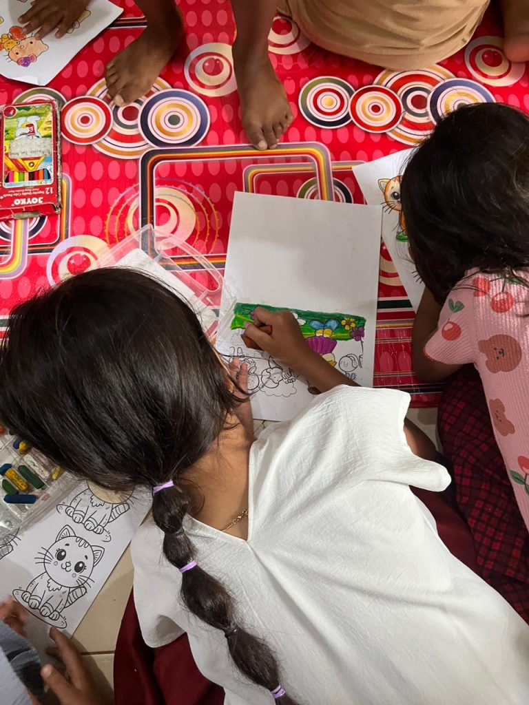 Memasuki siang hari, kegiatan dilanjutkan dengan Ruang Belajar yang mengangkat tema “Ruang Belajar Ramah Anak: Literasi untuk Perlindungan Diri”. Kegiatan ini menghadirkan suasana belajar yang aman, nyaman, dan ramah bagi anak dan perempuan. Dalam pelaksanaannya, kami mengundang Perpustakaan Berjalan yang berasal dari Dinas Perpustakaan dan Kearsipan Kota Bandar Lampung, sehingga mampu meningkatkan minat dan antusiasme anak-anak dalam mengikuti kegiatan. Kegiatan ini diikuti oleh kurang lebih 25 anak, dengan berbagai aktivitas menarik seperti membaca bersama dan mewarnai gambar. Suasana kegiatan berlangsung penuh keceriaan, terlihat dari antusiasme anak-anak yang mengikuti kegiatan hingga selesai.