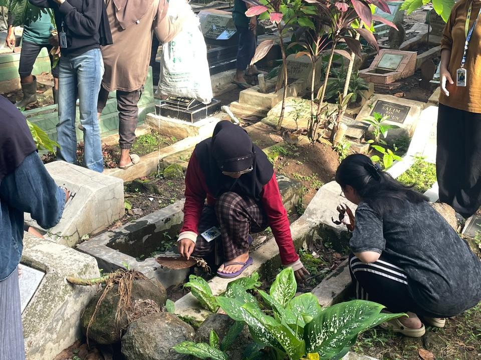 Bandar Lampung, 5 Februari 2026. Kegiatan diawali pada pagi hari dengan giat bersih lingkungan yang dilaksanakan di TPU Keramat Baru, Jalan Banten RT 001 LK II, Kelurahan Perwata. Bersama aparat kelurahan dan warga sekitar, kami bergotong royong membersihkan area TPU dari berbagai sampah, seperti daun-daun yang berserakan hingga sampah plastik. Kegiatan ini menjadi wujud kepedulian bersama terhadap kebersihan lingkungan sekaligus mempererat kebersamaan antara mahasiswa KKN dan masyarakat setempat.