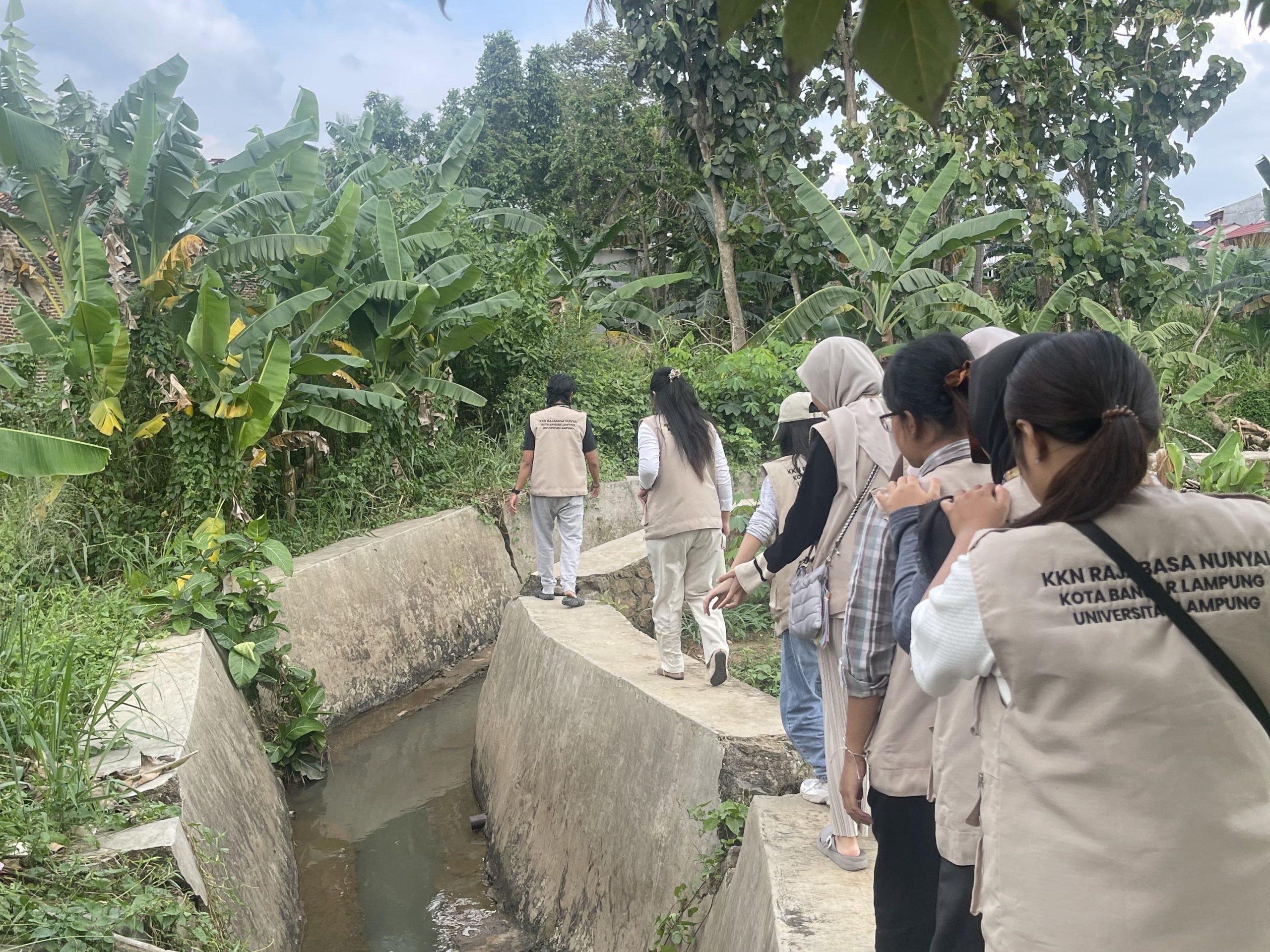 Pada hari yang sama, mahasiswa KKN juga melakukan kegiatan survei drainase di beberapa titik wilayah Kelurahan Rajabasa Nunyai. Survei ini dilakukan sebagai bagian dari pengumpulan data pendukung program kerja lingkungan, khususnya yang berkaitan dengan pengelolaan aliran air dan pencegahan genangan. Hasil survei drainase tersebut diharapkan dapat menjadi bahan pendukung dalam penyusunan materi penyuluhan serta perencanaan kegiatan lingkungan yang lebih tepat sasaran.