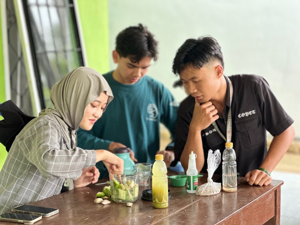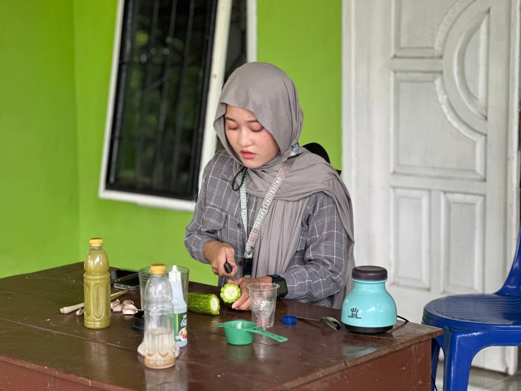 Setelah live report, masing-masing anggota kelompok melanjutkan aktivitas persiapan pribadi seperti mandi, makan, memasak, serta membersihkan posko. Selanjutnya, kami menyiapkan seluruh perlengkapan yang dibutuhkan untuk pelaksanaan program kerja utama hari ini, yaitu edukasi manfaat serta praktik pembuatan biopestisida dan pupuk organik cair (POC).