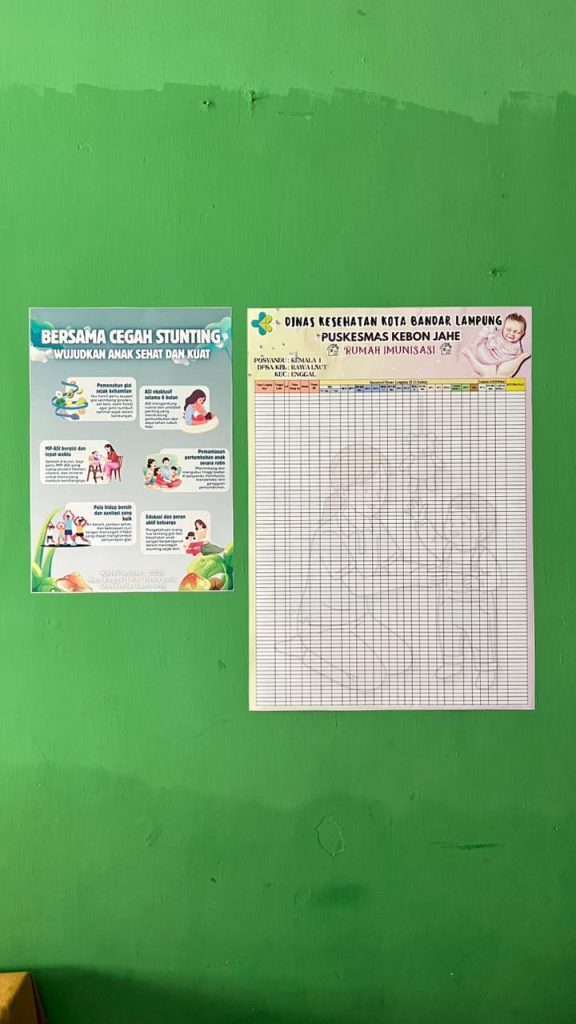 Bandar Lampung, 14 Januari 2026 – Mahasiswa Kuliah Kerja Nyata (KKN) Universitas Lampung melaksanakan kegiatan penempelan poster pencegahan stunting dan tabel imunisasi di Posyandu Kemala 1, Kelurahan Rawa Laut. Kegiatan ini bertujuan untuk meningkatkan pemahaman masyarakat, khususnya orang tua balita, mengenai pentingnya pemenuhan gizi seimbang, pola asuh yang tepat, serta pemantauan tumbuh kembang anak sejak usia dini. Poster pencegahan stunting dan tabel imunisasi dipasang di lokasi yang mudah terlihat oleh pengunjung posyandu agar informasi dapat dibaca dan dipahami secara berkelanjutan.