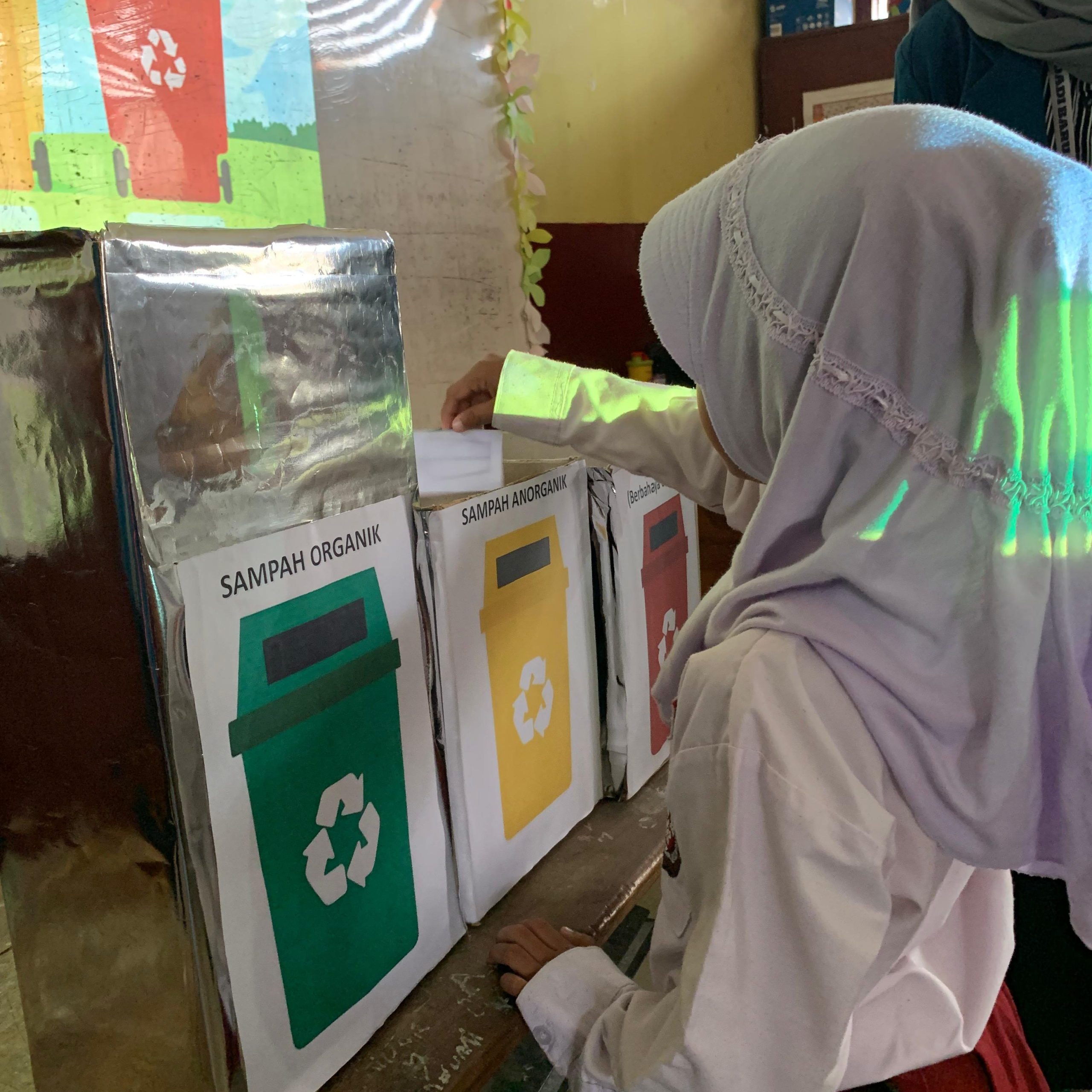 Sosialisasi disampaikan dengan pendekatan edukatif dan menyenangkan, yakni melalui media visual dan permainan interaktif berupa game pengelompokan sampah. Anak-anak diajak secara aktif mengklasifikasikan berbagai jenis sampah ke dalam kategori yang tepat. Metode ini terbukti efektif karena mampu meningkatkan pemahaman siswa sambil tetap menjaga suasana belajar yang menyenangkan dan penuh antusiasme.