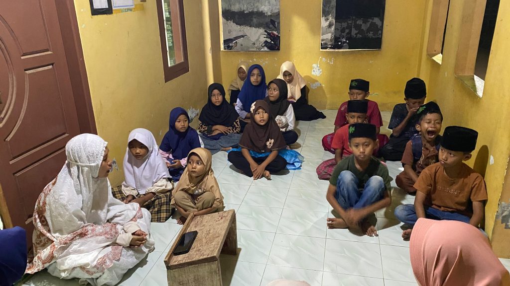 Sebagai penutup yang interaktif, mahasiswa menyisipkan sesi kuis edukatif seputar dasar-dasar agama, seperti rukun Islam, rukun iman, hingga doa sehari-hari. Metode ini terbukti ampuh memicu semangat anak-anak untuk menjawab pertanyaan dengan cepat agar bisa berpamitan pulang lebih dulu. Kegiatan diakhiri dengan diskusi santai dan ucapan terima kasih kepada pengajar setempat atas kesempatan berharga untuk berbaur dengan dinamika sosial dusun. Pengalaman ini menjadi catatan penting bagi Kelompok KKN Merak Batin 3 bahwa pendekatan humanis melalui aktivitas keseharian warga adalah kunci utama dalam membangun kedekatan emosional yang bermakna selama masa pengabdian.