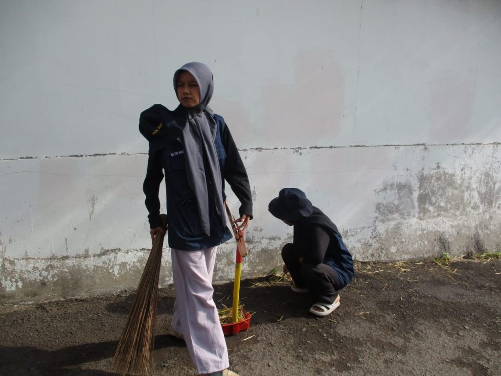 Kegiatan dimulai pada pagi hari dengan semangat kebersamaan. Para mahasiswa bersama warga, termasuk Ketua RT setempat, saling membantu dalam membersihkan area sekitar jalan. Salah satu fokus kegiatan adalah mencabuti rumput liar yang tumbuh di pinggir-pinggir jalan agar lingkungan terlihat lebih rapi dan terawat. Suasana penuh kekompakan terasa sepanjang kegiatan, dengan canda tawa dan saling membantu antar peserta.
