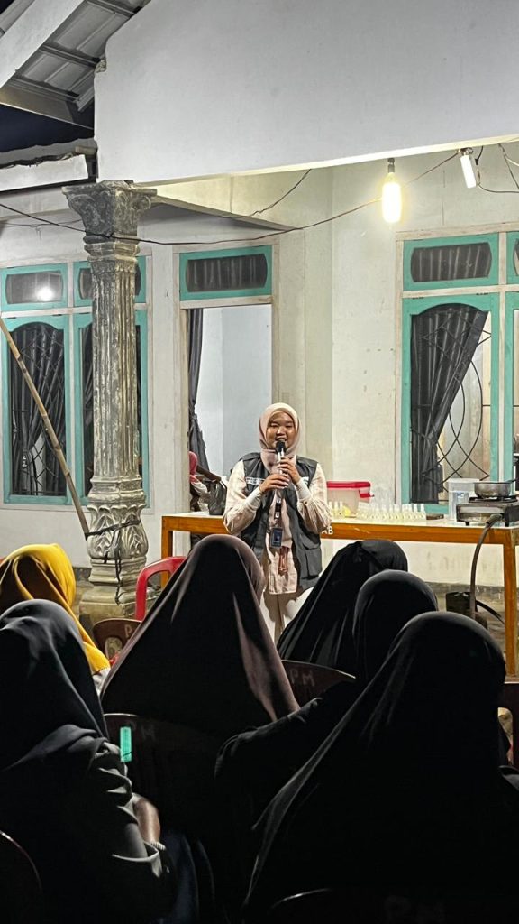 Setelah sosialisasi PHBS, kegiatan dilanjutkan dengan sosialisasi dan demonstrasi pembuatan hand sanitizer berbahan alami. Hand sanitizer tersebut dibuat menggunakan bahan-bahan alami yang mudah ditemukan di lingkungan sekitar, yaitu daun sirih, serai, dan jeruk nipis. Melalui kegiatan ini, masyarakat diajak untuk memanfaatkan potensi alam sebagai alternatif produk kesehatan yang aman, murah, dan ramah lingkungan.