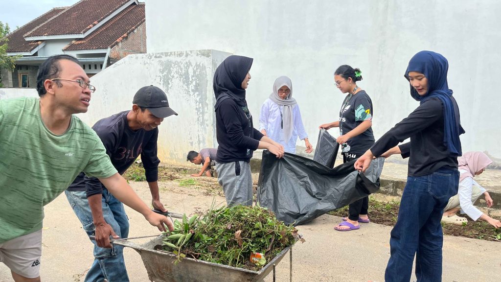 Kegiatan diawali pada pukul 07.30 WIB dengan gotong royong membersihkan lingkungan di sekitar RT 06 Lingkungan 2 Kelurahan Rajabasa Jaya. Kegiatan ini melibatkan mahasiswa KKN dan warga setempat sebagai upaya menumbuhkan semangat kebersamaan serta kepedulian terhadap kebersihan dan kenyamanan lingkungan. Gotong royong difokuskan pada pembersihan saluran air, area jalan lingkungan, dan ruang publik yang sering digunakan oleh warga.