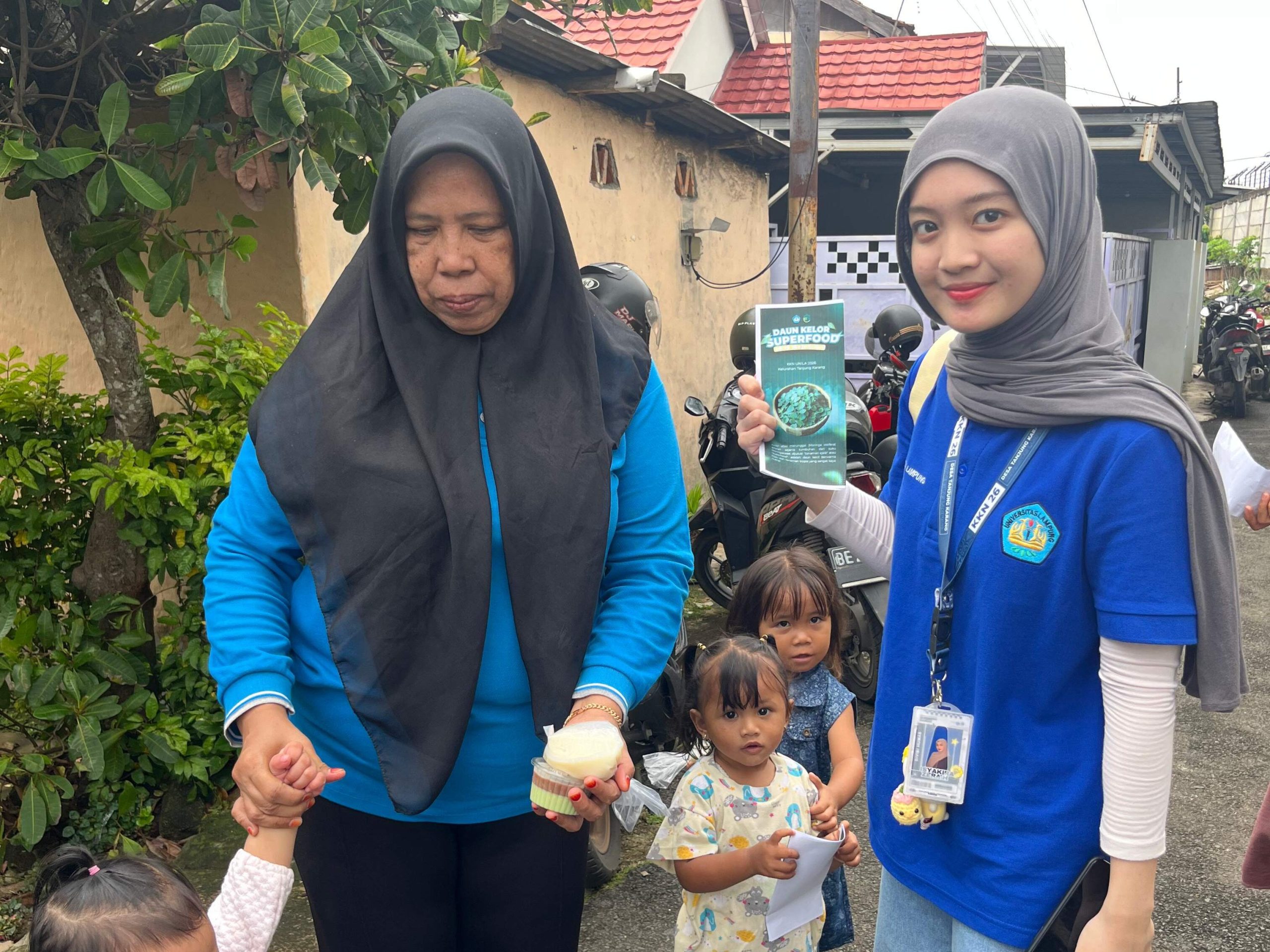 Dalam kegiatan tersebut, mahasiswa KKN Unila membagikan PMT berupa puding daun kelor yang telah melalui proses persiapan dan memperoleh persetujuan dari kader posyandu serta kader stunting setempat. Daun kelor diperkenalkan sebagai bahan pangan bernilai gizi tinggi yang mudah diolah dan berpotensi menjadi alternatif PMT sehat bagi balita. Kegiatan ini diikuti oleh sekitar 20 ibu yang juga mendapatkan edukasi mengenai manfaat gizi daun kelor.