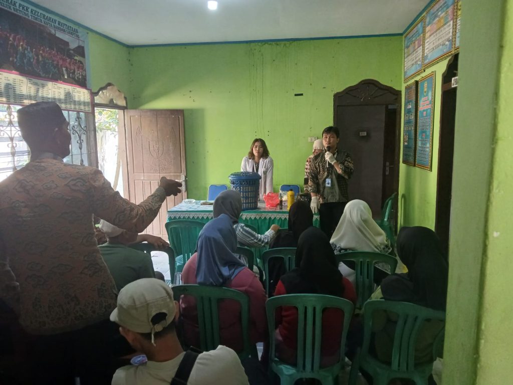 Sekelompok mahasiswa Kuliah Kerja Nyata (KKN) yang tengah melaksanakan pengabdian di Kelurahan Way Tataan, Kecamatan Teluk Betung Timur, menggelar kegiatan sosialisasi bertajuk “Pemanfaatan Limbah Rumah Tangga Menjadi Solusi Lingkungan: Pupuk Takakura dan Pestisida Puntung Rokok”. Kegiatan ini berlangsung pada hari Rabu, 6 Agustus 2025, di kantor Kelurahan Way Tataan, dan dihadiri oleh perwakilan dari setiap Rukun Tetangga (RT) di kantor kelurahan way tataan.