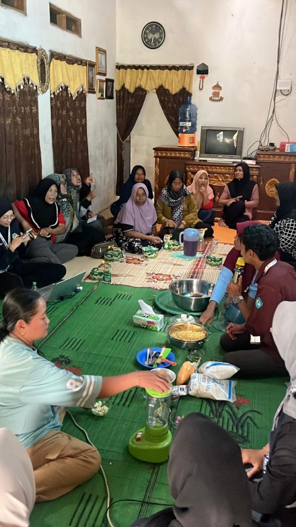 Suasana di kediaman Ibu Yuniarsih tampak sangat meriah dari siang hingga ke sore hari. Puluhan ibu-ibu pekon datang dengan antusias untuk menyerap ilmu pengolahan pangan yang baru. Mereka berkumpul di ruang pertemuan yang telah disiapkan secara apik oleh tuan rumah. Para peserta tampak membawa catatan kecil untuk menuliskan detail resep nugget jagung. Ibu Yuniarsih sendiri menyatakan rasa bangganya karena rumahnya terpilih menjadi pusat pelatihan. Mahasiswa KKN dengan sigap menyiapkan peralatan memasak serta bahan-bahan berkualitas di depan audiens. Kerjasama antara mahasiswa dan warga menciptakan atmosfer belajar yang sangat hangat dan kondusif.