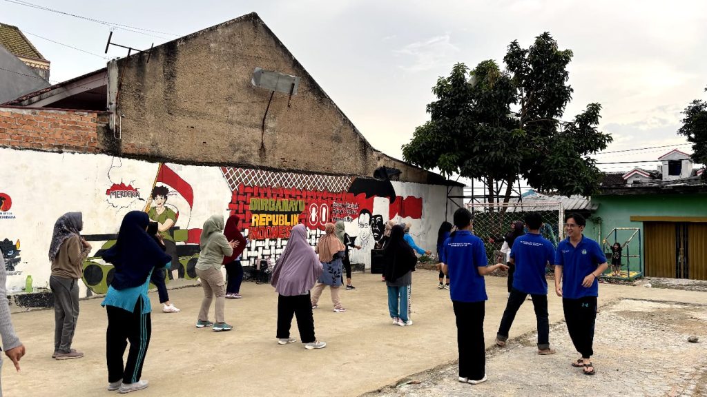 Senam rutin dimulai pada pagi hari dengan dipandu oleh instruktur senam yang telah ditunjuk oleh warga. Mahasiswa Kelompok Sukabumi 2 ikut serta mengikuti setiap rangkaian gerakan senam dengan penuh semangat bersama ibu-ibu dan warga lainnya. Suasana kegiatan berlangsung ceria, penuh kebersamaan, serta diwarnai dengan interaksi hangat antara mahasiswa dan masyarakat.