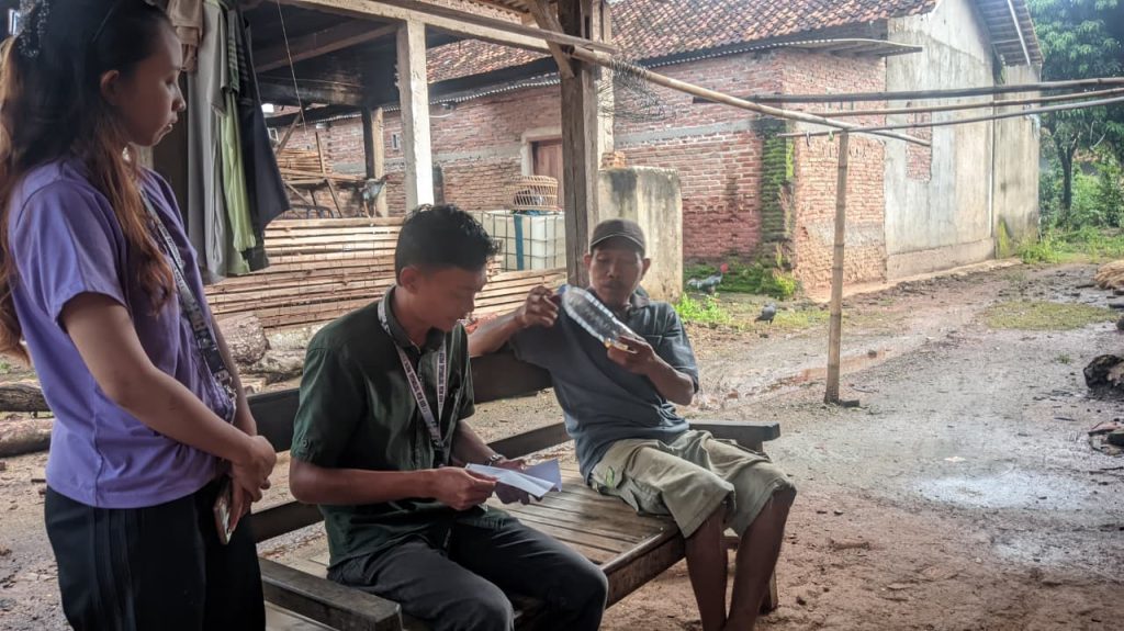 Tidak hanya memberikan enzim, mahasiswa juga melaksanakan sesi pengarahan teknis yang mendalam mengenai prosedur pembuatan chip mocaf. Penjelasan dimulai dari pemilihan jenis singkong yang tepat hingga metode fermentasi yang akurat menggunakan enzim tersebut. Mahasiswa menekankan pentingnya menjaga kebersihan selama proses produksi agar chip yang dihasilkan tidak berbau dan berwarna cerah. Bapak Parto diberikan pemahaman bahwa kualitas chip akan sangat menentukan tekstur akhir dari tepung mocaf yang dihasilkan nanti. Pengarahan dilakukan secara detail agar setiap tahapan teknis dapat dipahami dengan baik oleh beliau selaku praktisi lapangan. Diskusi interaktif terjadi saat Bapak Parto menanyakan detail waktu perendaman yang paling optimal untuk skala produksi rumahan. Mahasiswa berusaha menjawab setiap pertanyaan dengan dasar ilmiah yang telah mereka peroleh selama masa pembekalan KKN.