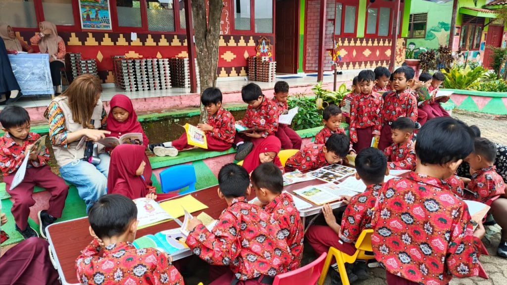 Mahasiswa KKN berperan aktif sebagai fasilitasi sekaligus pendamping yang membantu siswa memilih bacaan yang sesuai dengan usia dan minat mereka. Tidak sekadar membiarkan anak-anak membaca sendiri, para mahasiswa juga membuka sesi diskusi kecil dan membacakan nyaring (read aloud) beberapa buku bergambar untuk siswa kelas rendah. Pendekatan ini terbukti efektif membuat anak-anak lebih betah berlama-lama di sekitar bus literasi, mengubah pandangan bahwa membaca adalah kegiatan yang membosankan menjadi sebuah petualangan visual yang imajinatif dan menyenangkan.