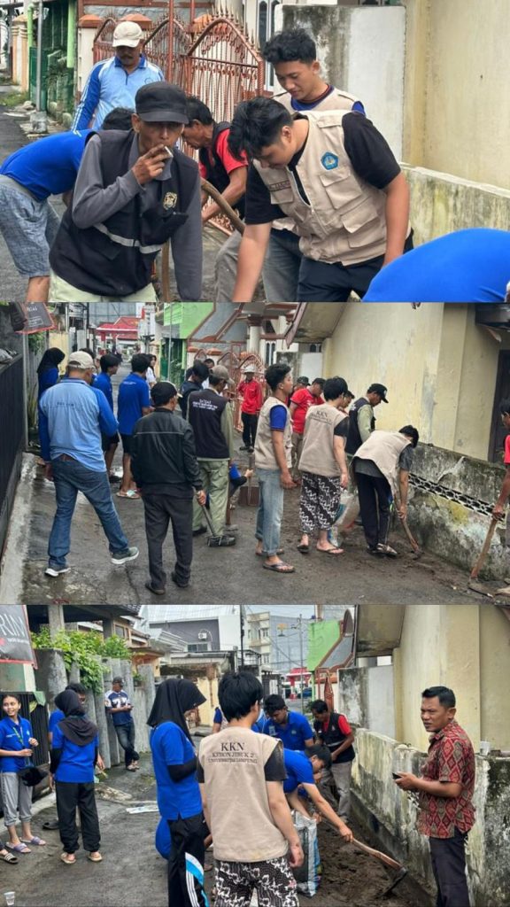 Bandar Lampung, 23 Januari 2026 – Mahasiswa KKN Universitas Lampung (UNILA) bersama Sekretaris Kelurahan, staf kelurahan, kepala lingkungan (Kaling), RT, Linmas, serta masyarakat melaksanakan kegiatan Jumat Bersih dengan aksi “gerebek sungai” di Kelurahan Kebon Jeruk. Kegiatan ini difokuskan pada pembersihan saluran air dengan mengeruk sedimentasi tanah serta mengangkat sampah yang menyumbat aliran drainase.