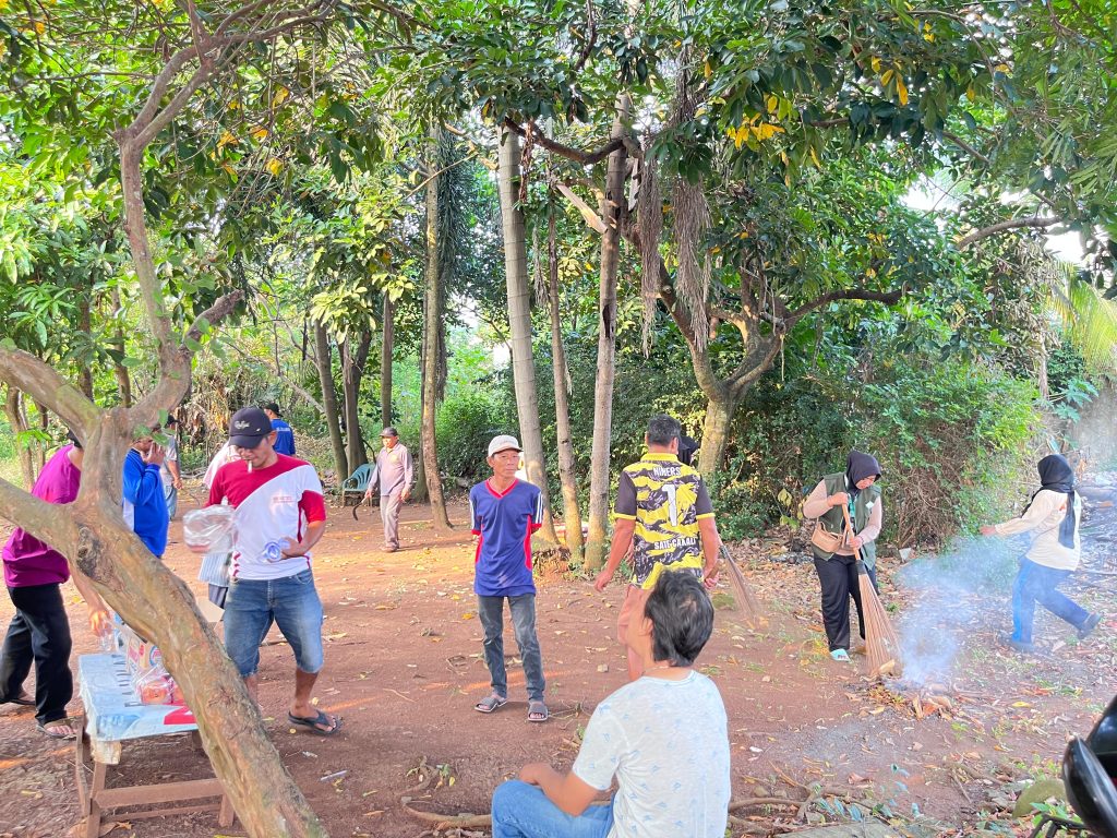 Sejak pagi hari, warga dan mahasiswa bersama-sama melaksanakan aksi gotong royong membersihkan lingkungan sekitar. Kegiatan ini mencakup penyapuan jalan lingkungan, pengangkutan sampah, hingga perapihan semak dan rumput liar di area-area yang mulai tampak tidak terurus. Alat-alat sederhana seperti cangkul dan sapu menjadi senjata utama dalam mewujudkan lingkungan yang lebih bersih dan tertata.