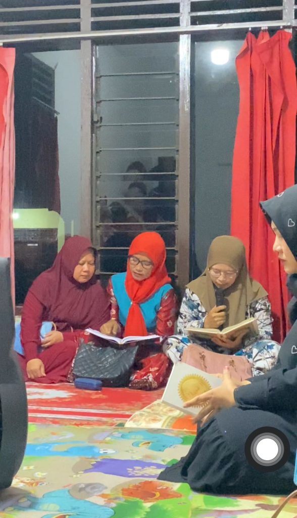 Pelaksanaan pengajian rutin ini diisi dengan pembacaan ayat suci Al-Qur’an, penyampaian tausiyah, serta doa bersama. Materi yang disampaikan berfokus pada penguatan nilai-nilai keislaman dalam kehidupan sehari-hari, seperti pentingnya menjaga akhlak, meningkatkan keimanan, serta menumbuhkan rasa kepedulian dan persaudaraan di tengah masyarakat. Suasana yang tenang dan penuh kekhusyukan semakin menambah makna dari kegiatan tersebut.