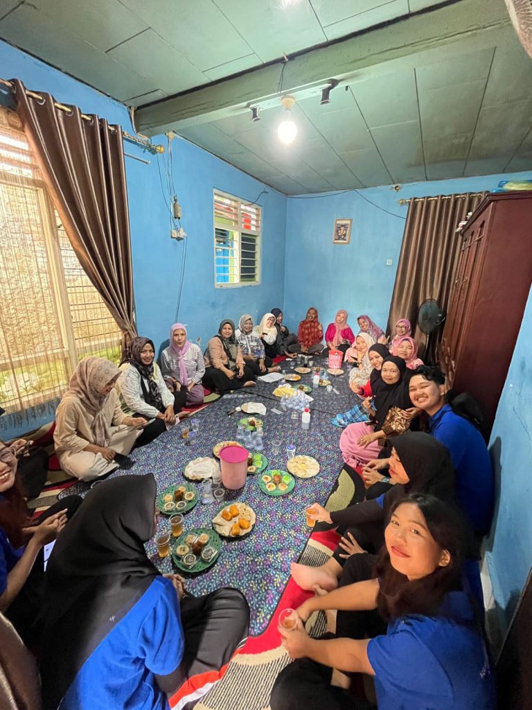 Selain mengikuti gotong royong, mahasiswa KKN juga berkesempatan menghadiri kegiatan arisan ibu-ibu yang rutin dilaksanakan di Lingkungan 1. Kegiatan ini menjadi ruang silaturahmi dan komunikasi antarwarga, sekaligus wadah berbagi informasi dan pengalaman. Mahasiswa KKN disambut dengan ramah dan diajak untuk berbaur, sehingga tercipta suasana kekeluargaan yang hangat.
