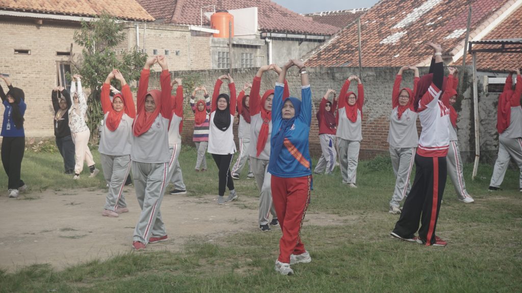 Suasana pagi itu terasa sangat hidup dan penuh energi. Puluhan ibu-ibu warga setempat yang mengenakan seragam olahraga merah-abu tampak antusias mengikuti gerakan senam. Tak hanya kaum ibu, keceriaan juga datang dari anak-anak kecil di lingkungan sekitar yang turut meramaikan suasana. Kehadiran mereka yang berbaur akrab dengan kakak-kakak mahasiswa menambah kehangatan suasana kekeluargaan di pagi hari.
