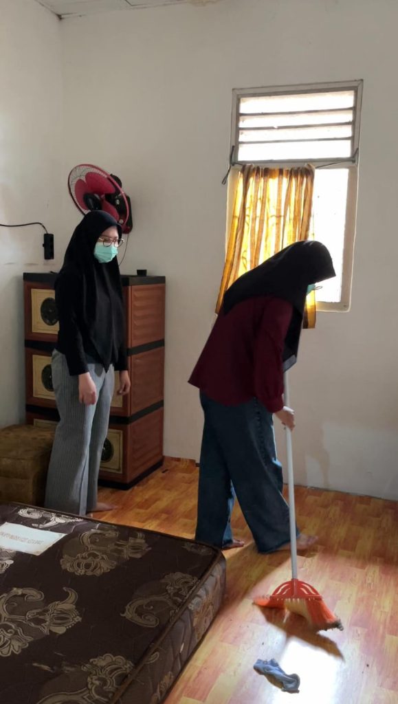 Sejak pagi hari, anggota kelompok mulai membersihkan area dalam posko, seperti ruang tamu, kamar, dan dapur. Selain itu, area luar posko juga turut dibersihkan, termasuk halaman dan selokan di sekitar posko. Setiap anggota mendapat tugas masing-masing sehingga kegiatan dapat berjalan dengan tertib dan lancar.Kegiatan bersih-bersih ini tidak hanya bertujuan untuk menjaga kebersihan lingkungan, tetapi juga untuk menumbuhkan rasa tanggung jawab dan kebersamaan antaranggota kelompok.