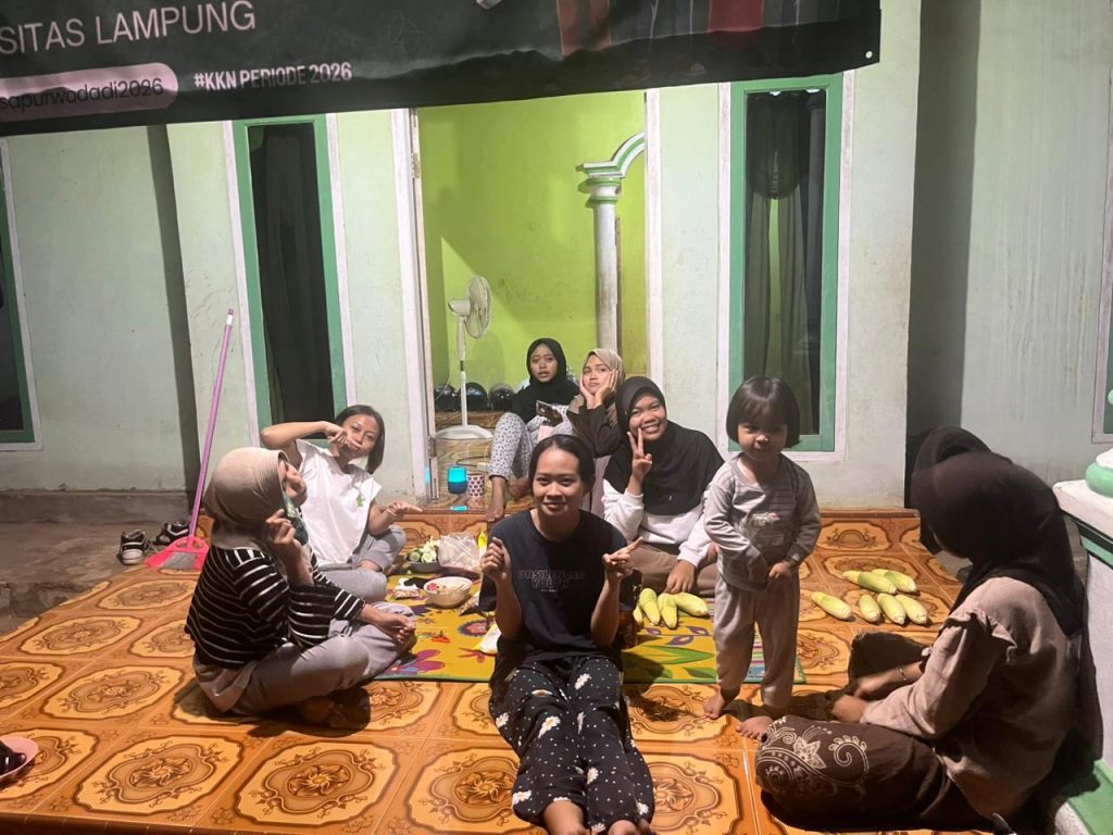 Purwodadi — Mahasiswa Kuliah Kerja Nyata Tematik (KKN-T) Universitas Lampung mengisi akhir pekan dengan melaksanakan kegiatan kebersamaan bersama pemilik posko pada Sabtu (31/1/2026) di Desa Purwodadi. Kegiatan ini menjadi salah satu bentuk upaya mempererat hubungan kekeluargaan antara mahasiswa KKN dengan bapak dan ibu pemilik posko selama masa pengabdian.