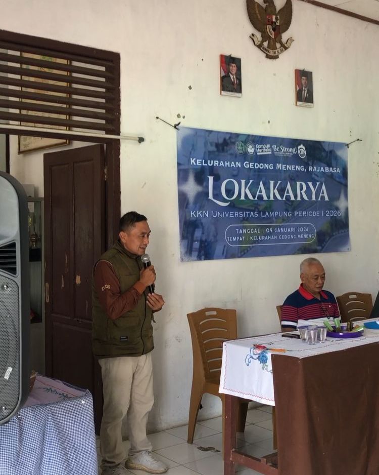 Mahasiswa Kuliah Kerja Nyata (KKN) Universitas Lampung melaksanakan kegiatan lokakarya pada Jumat, 9 Januari 2026, di Kelurahan Gedong Meneng, Kecamatan Rajabasa, Kota Bandar Lampung. Kegiatan ini menjadi forum awal bagi mahasiswa KKN untuk menyampaikan dan menyelaraskan rencana program kerja dengan kebutuhan masyarakat setempat.