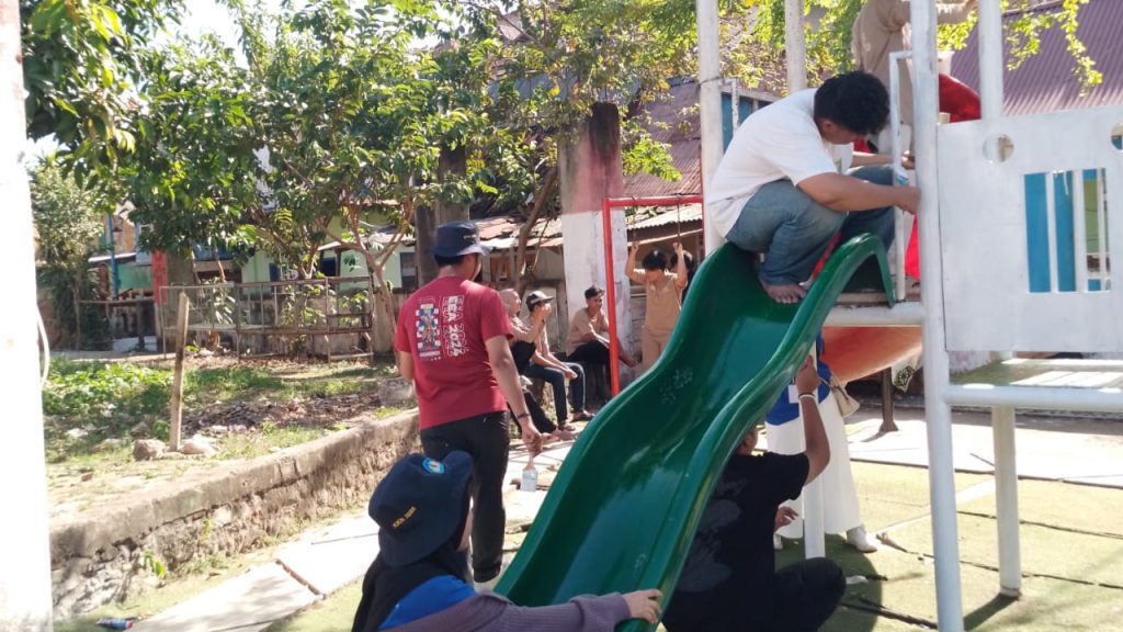 Pada Sabtu sore tanggal 19 Juli 2025 KKN Universitas Lampung melakukan kegiatan pengecetan diarea taman yang berkolaborasi dengan UIN RIL. Pengecatan taman ini dilaksanakan secara gotong royong dengan tujuan untuk mempercantik tampilan visual taman, serta meningkatkan kesadaran bersama sekaligus sebagai bentuk nyata kepedulian akan pentingnya menjaga kebersihan dan keindahan ruang publik. Kegiatan ini disambut dengan antusiasme yang tinggi seperti melakukan pengecatan fasilitas umum seperti bangku dan area bermain secara keseluruhan.