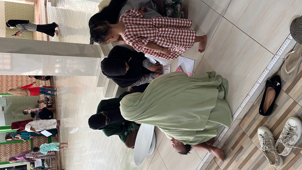 Kegiatan diawali dengan pengukuran tinggi badan, berat badan, serta pendataan tumbuh kembang setiap bayi. Selanjutnya, dilakukan pemberian vaksin sesuai kebutuhan untuk menjaga kesehatan dan daya tahan tubuh anak. Untuk para lansia, dilakukan pemeriksaan tinggi badan, berat badan, serta pengukuran lingkar perut sebagai bagian dari pemantauan kesehatan rutin.