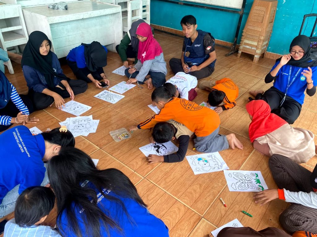 Setelah kegiatan senam pagi, acara dilanjutkan dengan kegiatan mewarnai sebagai sarana pengembangan kreativitas anak-anak. Kegiatan mewarnai ini bertujuan untuk melatih kemampuan motorik halus, meningkatkan imajinasi, serta memberikan ruang bagi anak-anak untuk mengekspresikan diri melalui media gambar dan warna. Anak-anak terlihat sangat antusias dan menikmati seluruh rangkaian kegiatan yang dilaksanakan.