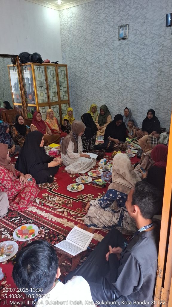 KKN Unila melanjutkan program pemberdayaan masyarakat di hari kelima dengan kegiatan yasinan bersama ibu-ibu warga RT 11 (pukul 13.00 WIB) di rumah warga setempat. Acara ini difokuskan pada pembacaan ayat suci Al-Qur’an, tausiyah singkat tentang pentingnya menjaga kebersihan lingkungan dalam perspektif agama, serta diskusi interaktif terkait peran perempuan dalam pengelolaan sampah rumah tangga. Kegiatan bertujuan memperkuat nilai spiritual sekaligus mengintegrasikan kesadaran ekologis melalui pendekatan kearifan lokal.