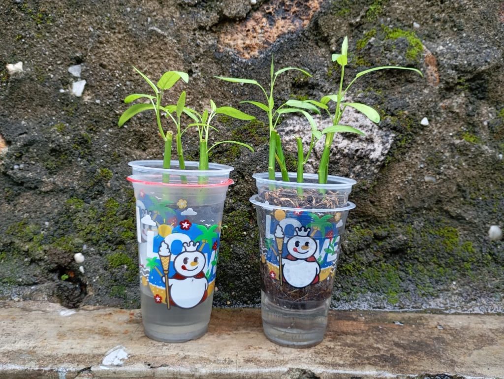 Setelah penyampaian materi, kegiatan dilanjutkan dengan praktik langsung pembuatan hidroponik sederhana. Ibu-ibu peserta tampak antusias mengikuti setiap tahapan, mulai dari menyiapkan gelas plastik bekas hingga menanam bibit kangkung ke dalam media tanam. Melalui kegiatan ini, peserta tidak hanya memperoleh pengetahuan baru, tetapi juga keterampilan praktis dalam memanfaatkan sampah gelas plastik menjadi media tanam yang bernilai guna dan ramah lingkungan.