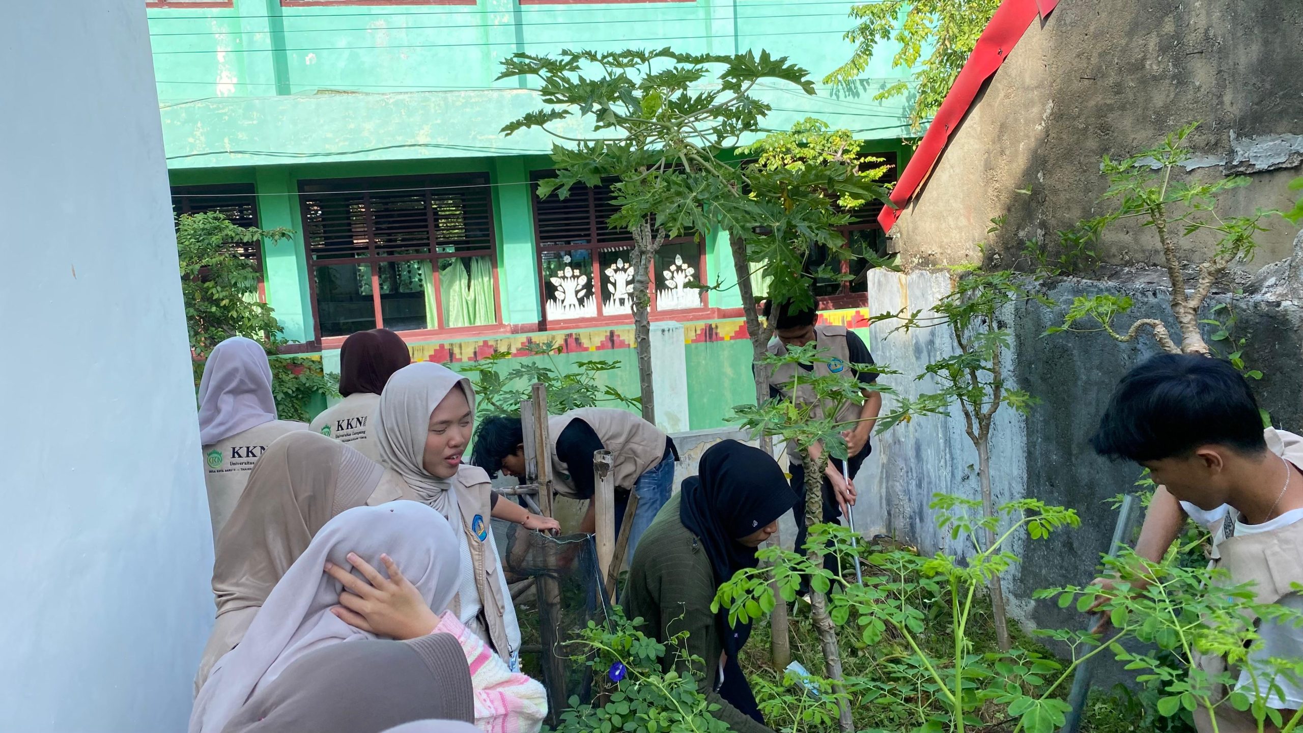 Kegiatan dimulai pada pagi hari dengan diawali koordinasi antar anggota kelompok terkait pembagian tugas. Seluruh mahasiswa KKN terlibat aktif dalam proses pembersihan, seperti mengumpulkan sampah, memangkas rumput liar, serta merapikan area lahan agar siap digunakan sebagai ruang hijau.