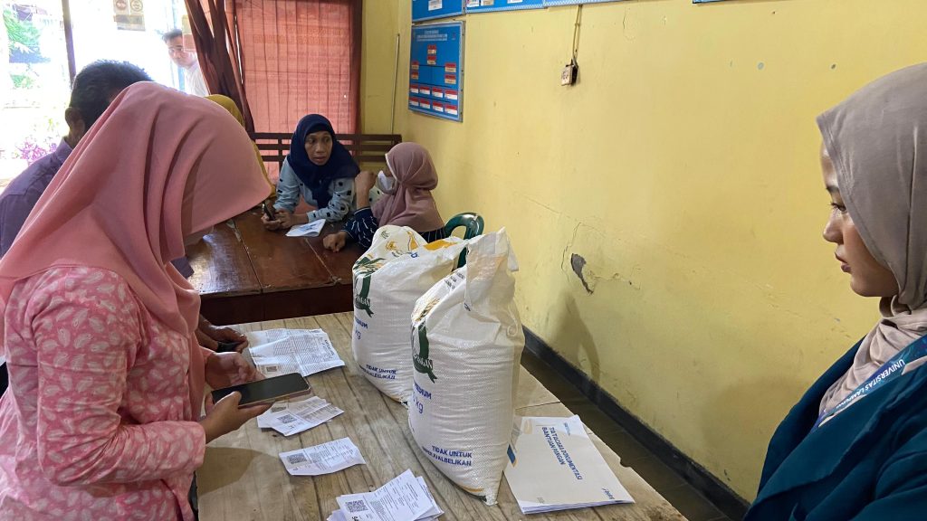 Selain itu, mahasiswa juga turut memberikan asistensi dalam acara pembagian beras yang diselenggarakan di Kantor Kelurahan Pahoman. Peran mahasiswa mencakup membantu proses pendataan, pengaturan alur pembagian, hingga memastikan kegiatan berjalan tertib dan lancar.