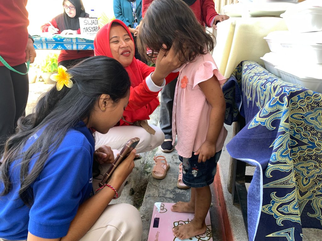 Pada kesempatan tersebut, mahasiswa KKN ikut membantu proses penimbangan balita, pencatatan perkembangan gizi, serta memberikan edukasi ringan mengenai pentingnya asupan nutrisi seimbang untuk tumbuh kembang anak. Selain itu, mahasiswa juga membantu menyiapkan perlengkapan posyandu dan berinteraksi langsung dengan warga, sehingga tercipta suasana hangat dan penuh kebersamaan.