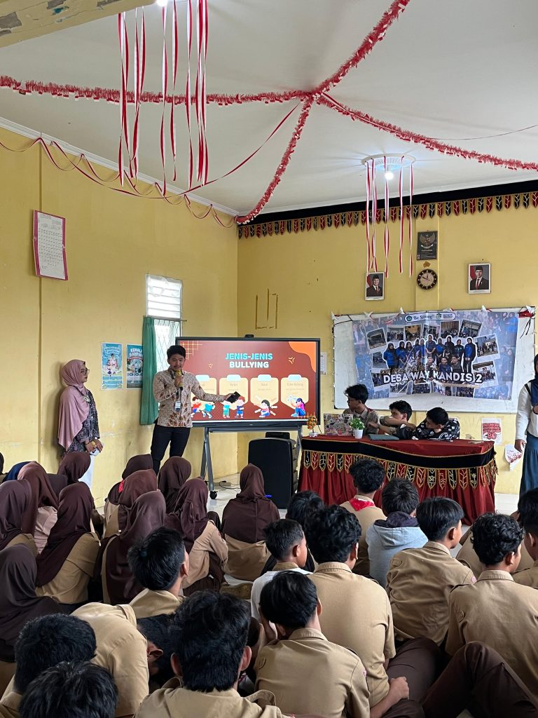 Kelompok KKN Desa Way Kandis 2 melaksanakan program kerja berupa sosialisasi pencegahan bullying dan penyalahgunaan narkoba pada Jumat, 23 Januari 2026. Kegiatan ini berlangsung di SMP IT Abdurrahman Ibnu Auf dan diikuti oleh para siswa dengan antusias.