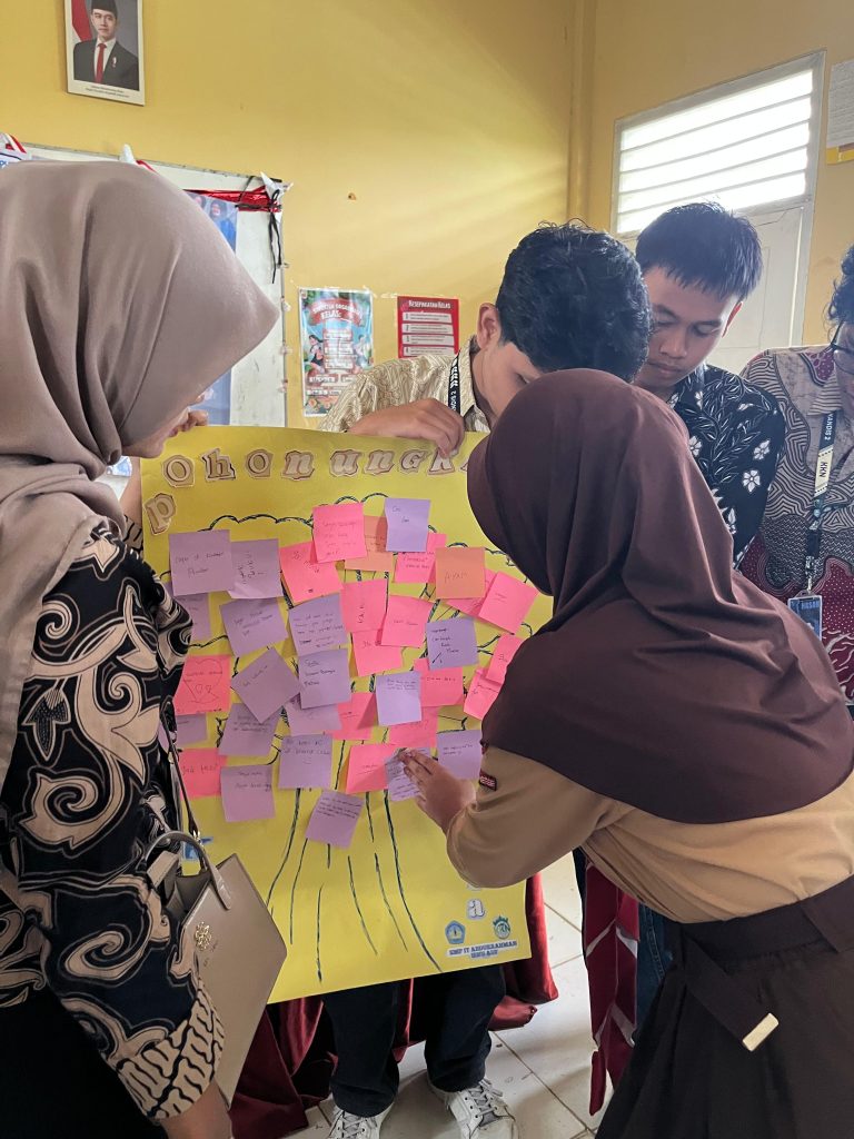 Selain sosialisasi, mahasiswa KKN juga menghadirkan “pohon curhat” sebagai wadah bagi siswa untuk menuliskan pengalaman, perasaan, atau permasalahan yang mereka hadapi secara anonim. Media ini diharapkan dapat membantu siswa lebih terbuka dan merasa didengar. Kegiatan kreatif lainnya adalah pembuatan konten media sosial dan penyediaan photo frame bertema “Stop Bullying” yang dimanfaatkan siswa untuk berfoto sebagai bentuk kampanye positif.