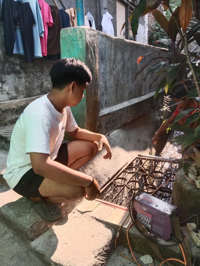 Pintu penahan sampah ini dibuat dari bahan sederhana seperti rangka besi dan jaring kawat yang dipasang pada mulut selokan. Fungsinya adalah menahan sampah-sampah berukuran besar, seperti plastik, botol, dan daun kering, agar tidak terbawa arus masuk ke sistem drainase. Mahasiswa KKN terlibat langsung dalam proses pemasangan di lapangan bersama warga dan perangkat lingkungan.