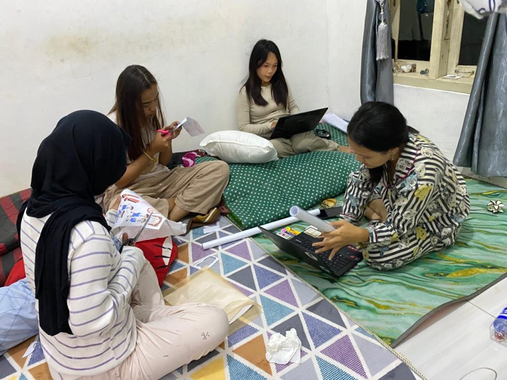 Selanjutnya, sejak sore hari hingga menjelang malam, kelompok KKN Penengahan Raya melanjutkan rangkaian kegiatan dengan melakukan persiapan dekorasi untuk pelaksanaan sosialisasi keesokan harinya. Persiapan ini dilakukan dengan penuh semangat dan kerja sama antaranggota kelompok, mulai dari menata perlengkapan, menyiapkan media pendukung, hingga memastikan seluruh kebutuhan teknis kegiatan telah tersedia dan siap digunakan.