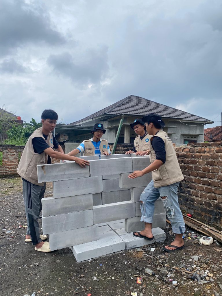 Setelah penataan lokasi selesai, mahasiswa melanjutkan kegiatan dengan melakukan pembelian alat dan bahan yang diperlukan untuk menunjang pembuatan insinerator serta kebutuhan program kerja lainnya. Proses pembelian dilakukan secara terencana sesuai dengan daftar kebutuhan yang telah disusun sebelumnya, guna memastikan seluruh peralatan yang digunakan sesuai dengan fungsi dan standar keselamatan kerja. Alat dan bahan yang telah dibeli kemudian dibawa ke lokasi untuk disiapkan pada tahap pengerjaan selanjutnya. Melalui kegiatan ini, mahasiswa tidak hanya berkontribusi secara fisik dalam persiapan program, tetapi juga belajar mengenai perencanaan, kerja sama tim, serta pentingnya manajemen waktu dan sumber daya dalam pelaksanaan kegiatan pengabdian kepada masyarakat.